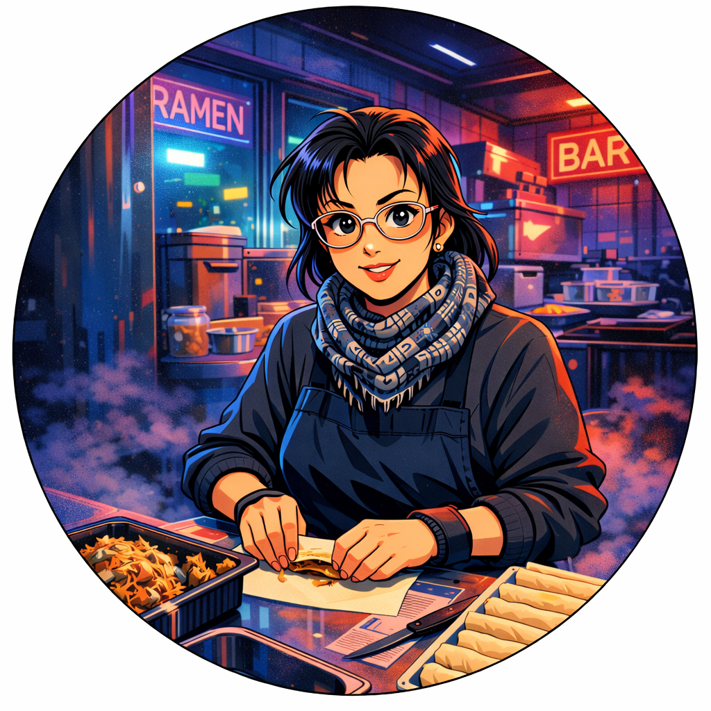 Nouilles aux œufs, saucisses à la citronnelle, carotte, chou chinois.